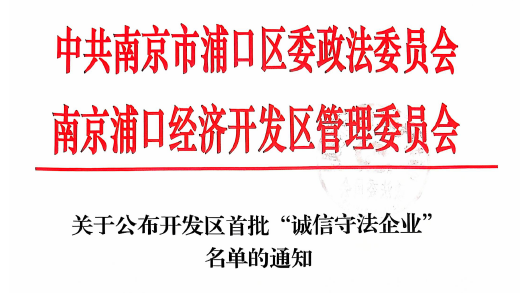 方生和醫(yī)藥 | 榮獲浦口經(jīng)開(kāi)區(qū)首批“誠(chéng)信守法企業(yè)”稱號(hào)